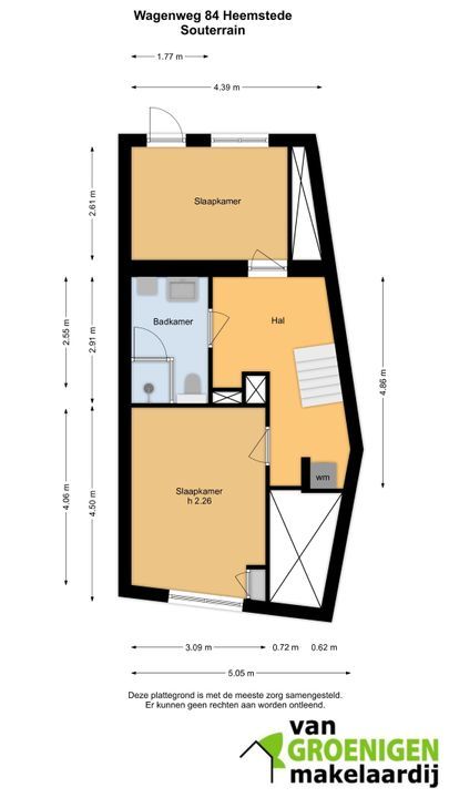 SOUTERRAIN: hal met opstelplaats wasmachine, slaapkamer aan de voorzijde en een slaapkamer aan de achterzijde met toegang tot de tuin. Vanuit de hal ook toegang tot de badkamer. De badkamer is voorzien van een ruime inloopdouche, toilet en wastafelmeubel.