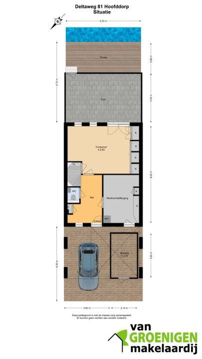 BEGANE GROND: entree/hal, meterkast en toilet. Vanuit de hal heb je toegang tot de inpandige ruime berging met wasmachine- en drogeraansluiting. Aan de achterzijde van de woning is een ruime kamer welke in gebruik is geweest als masterbedroom en is voorzien van een vaste kast én een praktische bergkast. Via de openslaande deuren heb je vervolgens toegang tot het heerlijke terras aan het water.