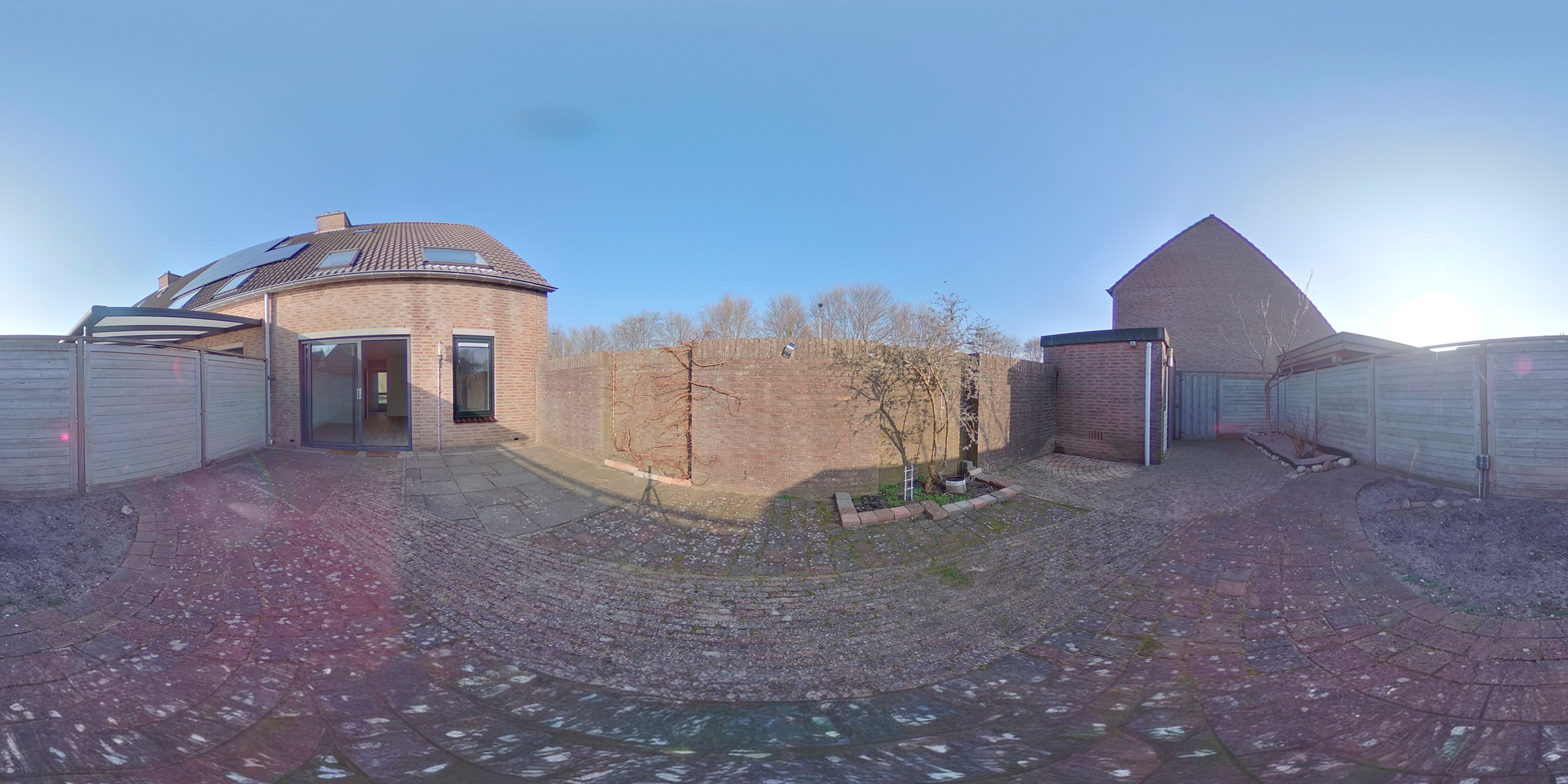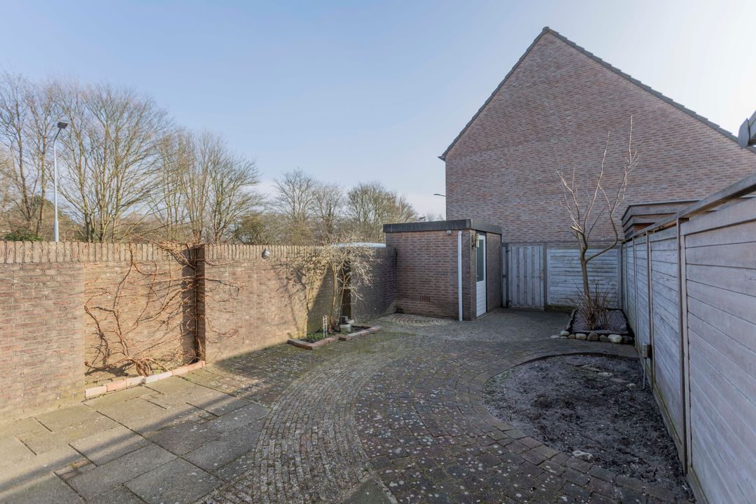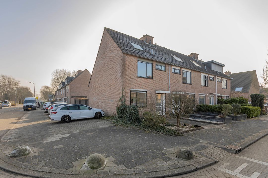 Located in the child-friendly residential area of Overbos, this end-of-terrace house features a deep front and rear garden. The backyard faces southeast and includes a detached brick storage shed.