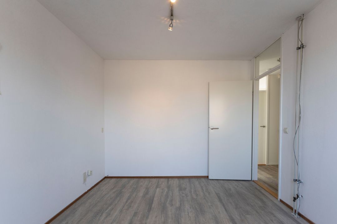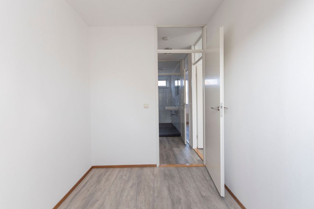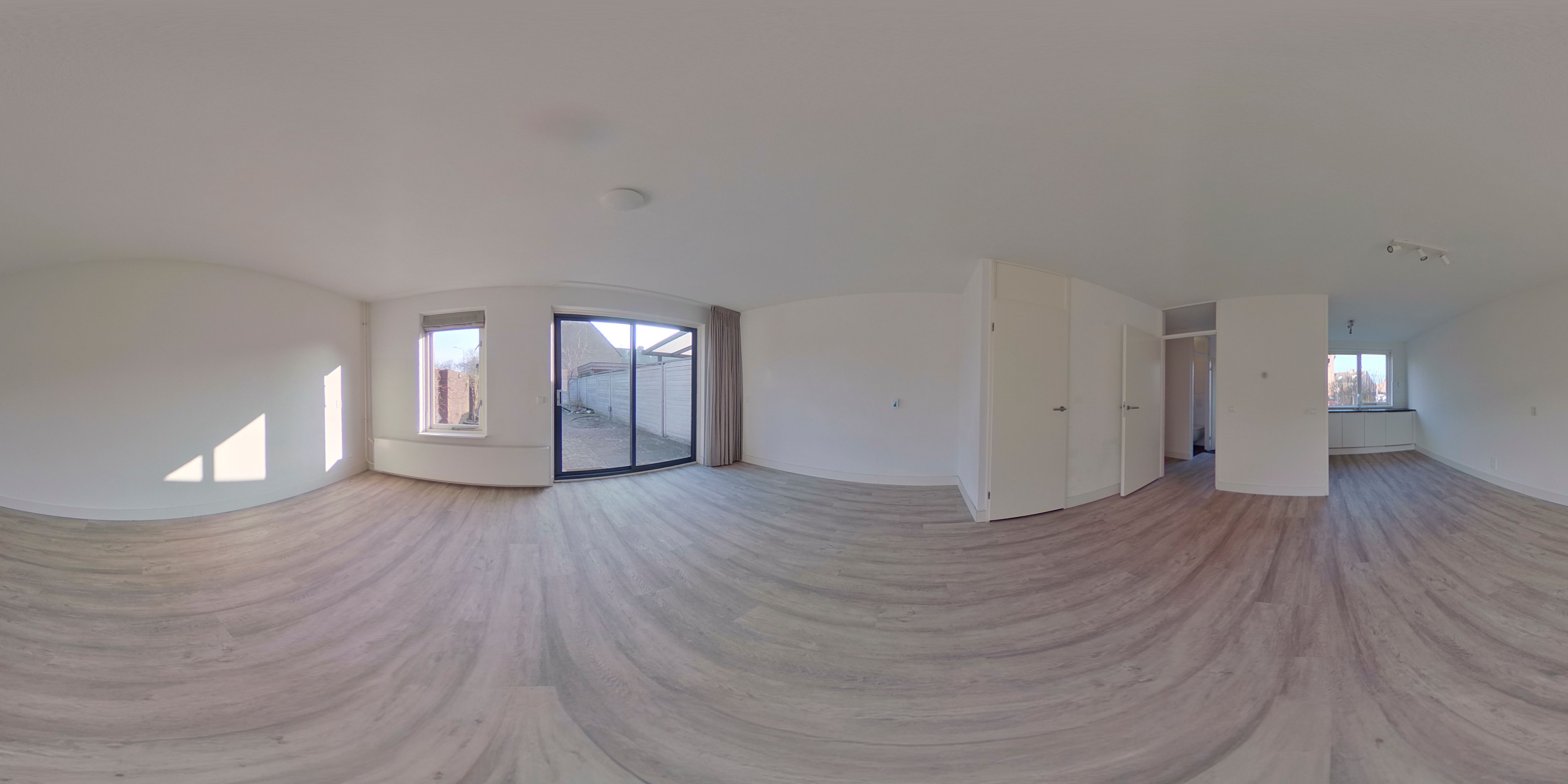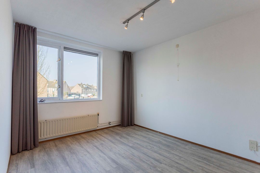 Located in the child-friendly residential area of Overbos, this end-of-terrace house features a deep front and rear garden. The backyard faces southeast and includes a detached brick storage shed.