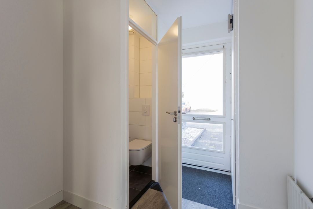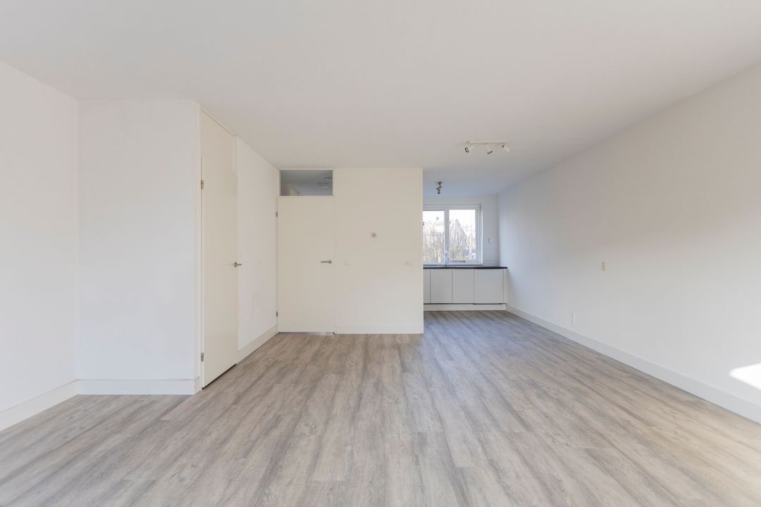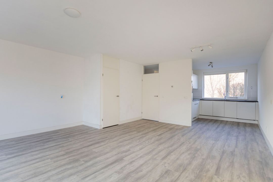 BEGANE GROND: entree, meterkast, toilet met fonteintje, tuingerichte woonkamer met schuifpui naar de tuin, trapkast en open keuken aan de voorzijde.