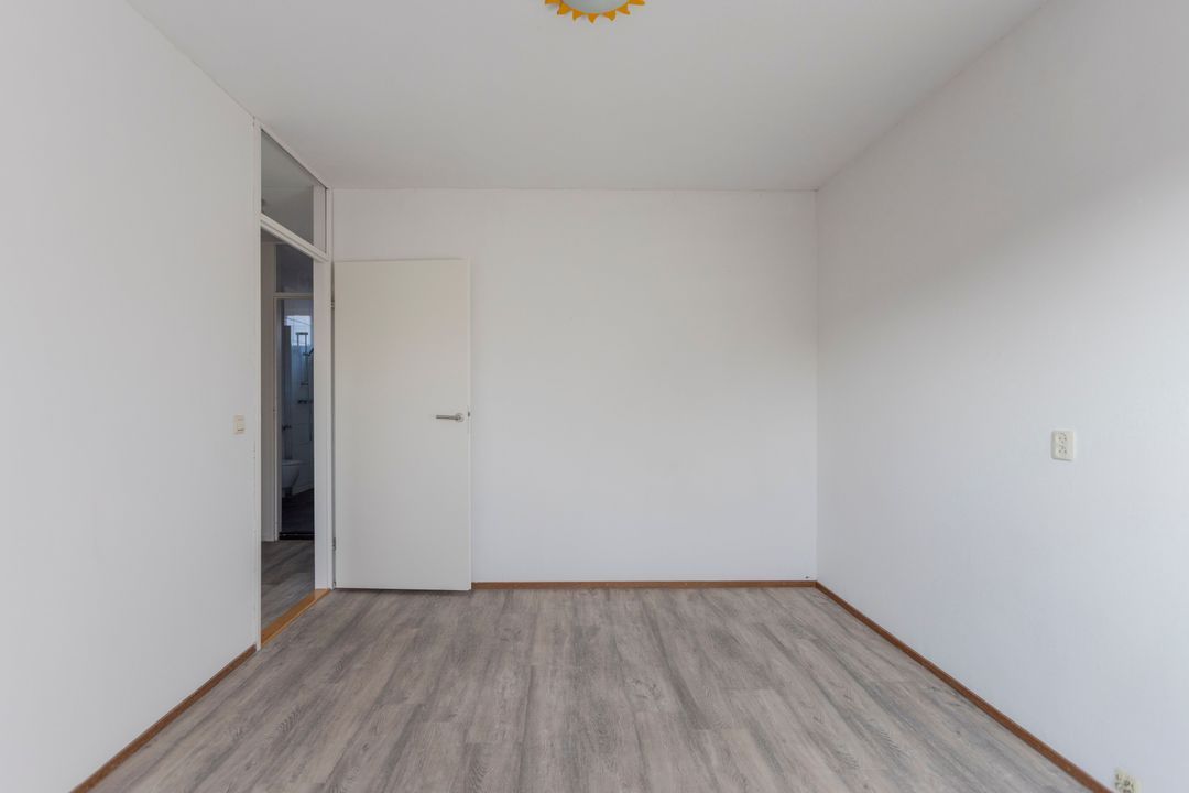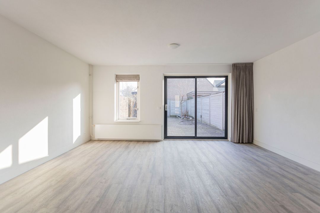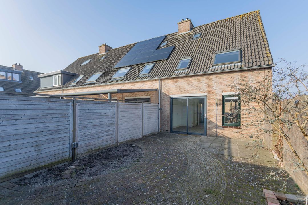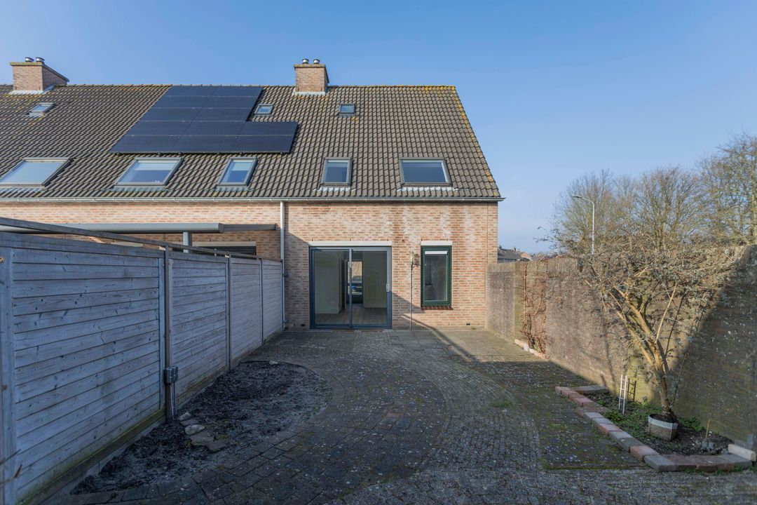 Located in the child-friendly residential area of Overbos, this end-of-terrace house features a deep front and rear garden. The backyard faces southeast and includes a detached brick storage shed.
