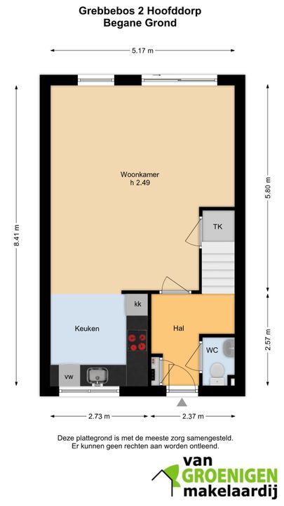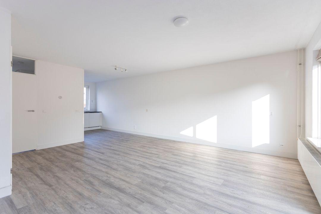 BEGANE GROND: entree, meterkast, toilet met fonteintje, tuingerichte woonkamer met schuifpui naar de tuin, trapkast en open keuken aan de voorzijde.