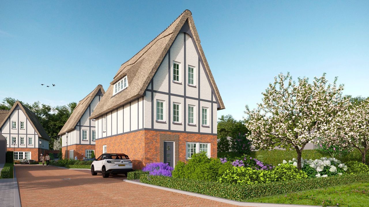 “A standard home is already rare in Tudorpark, but the homes in Tudorvilla’s are truly exceptional. The highly varied designs feature premium materials, including thatched roofs in different shapes and heights. Combined with traditionally built brick facades and dark wooden timber framing, the villas are visually stunning. The steep rooflines, characteristic of Tudor architecture, not only enhance the grandeur but also create a remarkable amount of additional space. The surrounding greenery and water complete the picture.”
