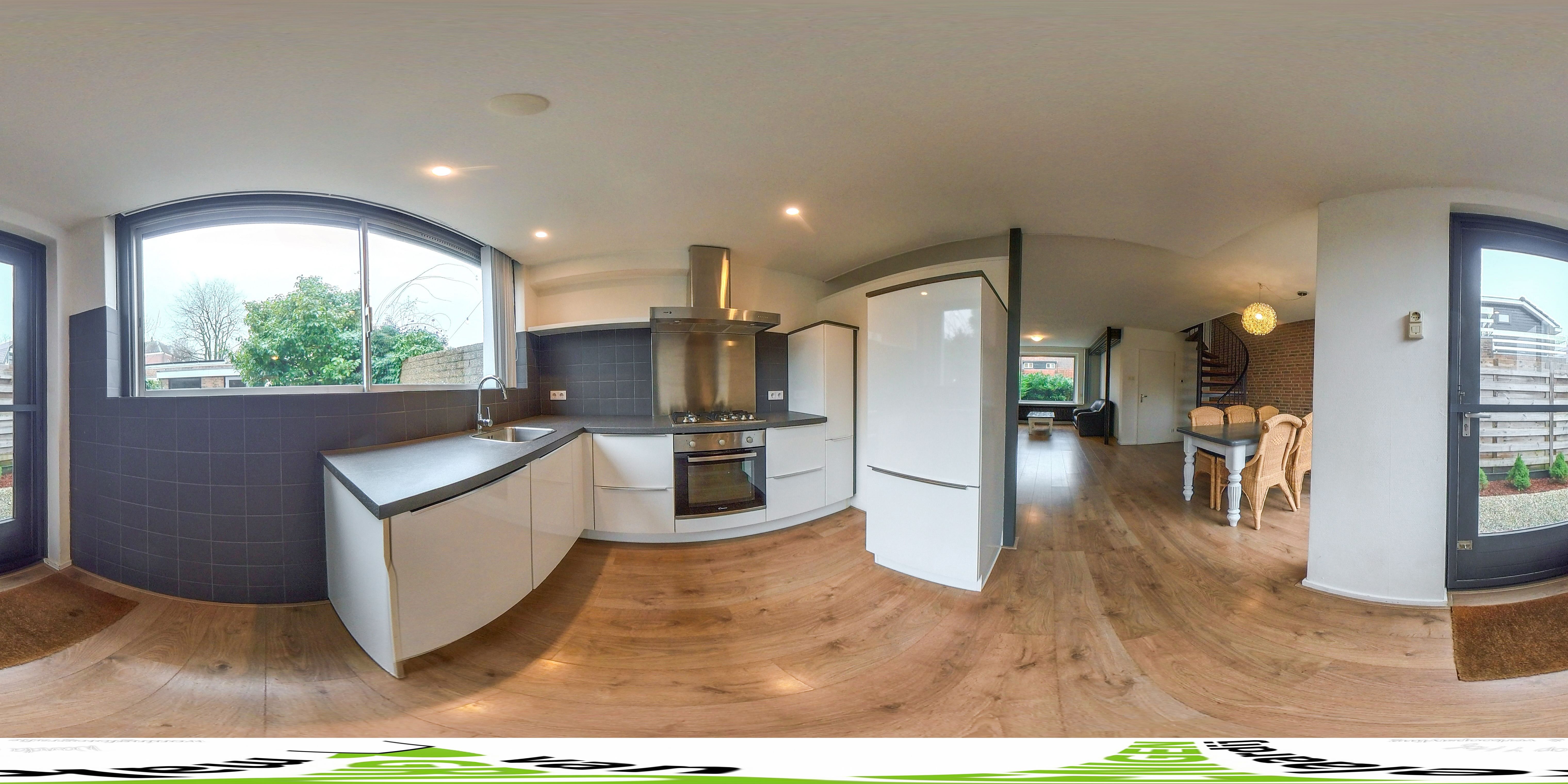 BEGANE GROND: entree/hal, meterkast, toilet met fonteintje, woon-/eetkamer met schuifpui naar de tuin, keuken met ingebouwde apparatuur, o.a. vaatwasser, koelkast, kookplaat en afzuigkap;