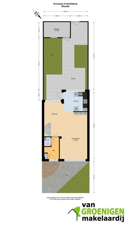 Eigen grond 142 m², woonoppervlakte ca 116 m².