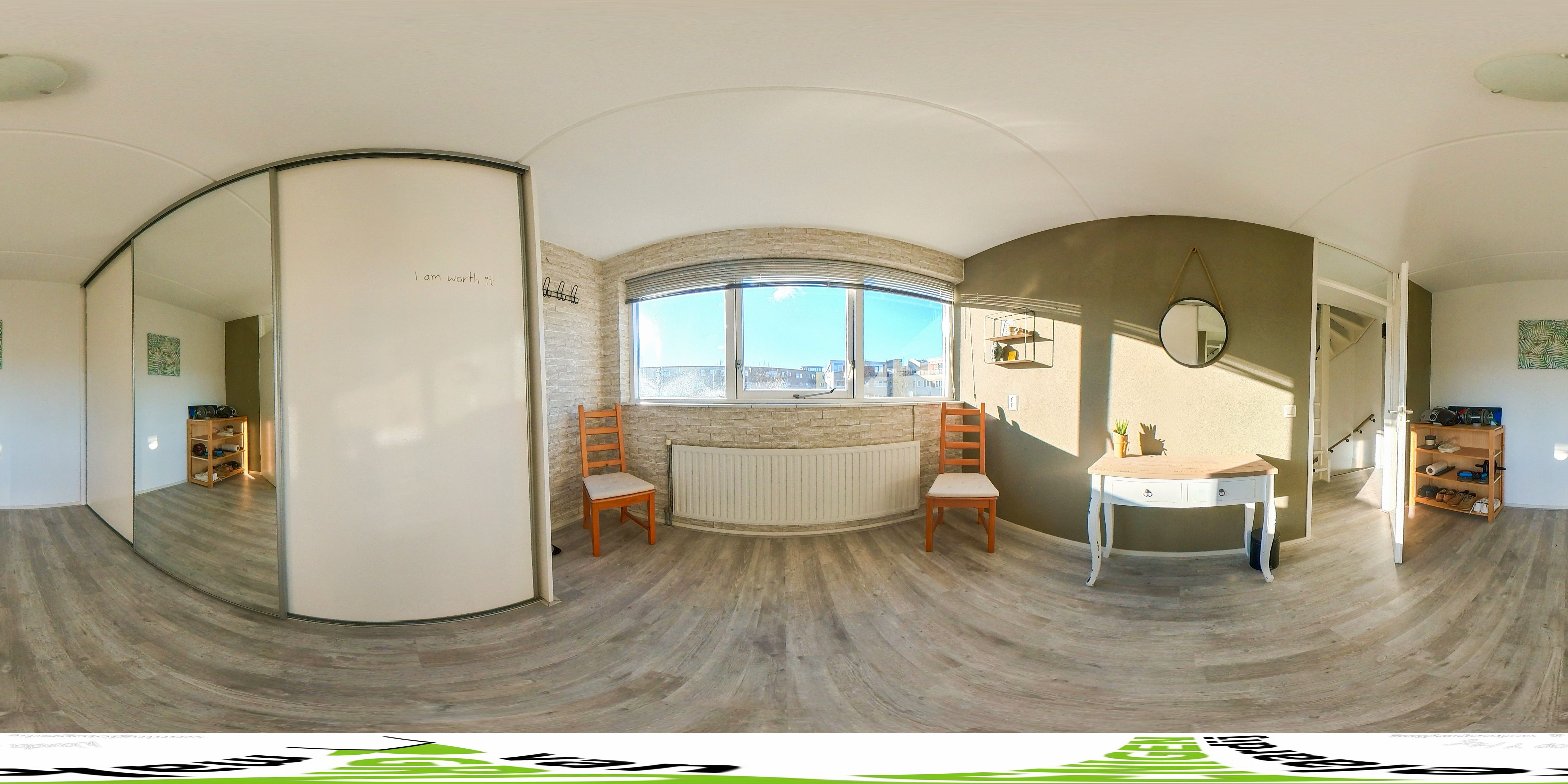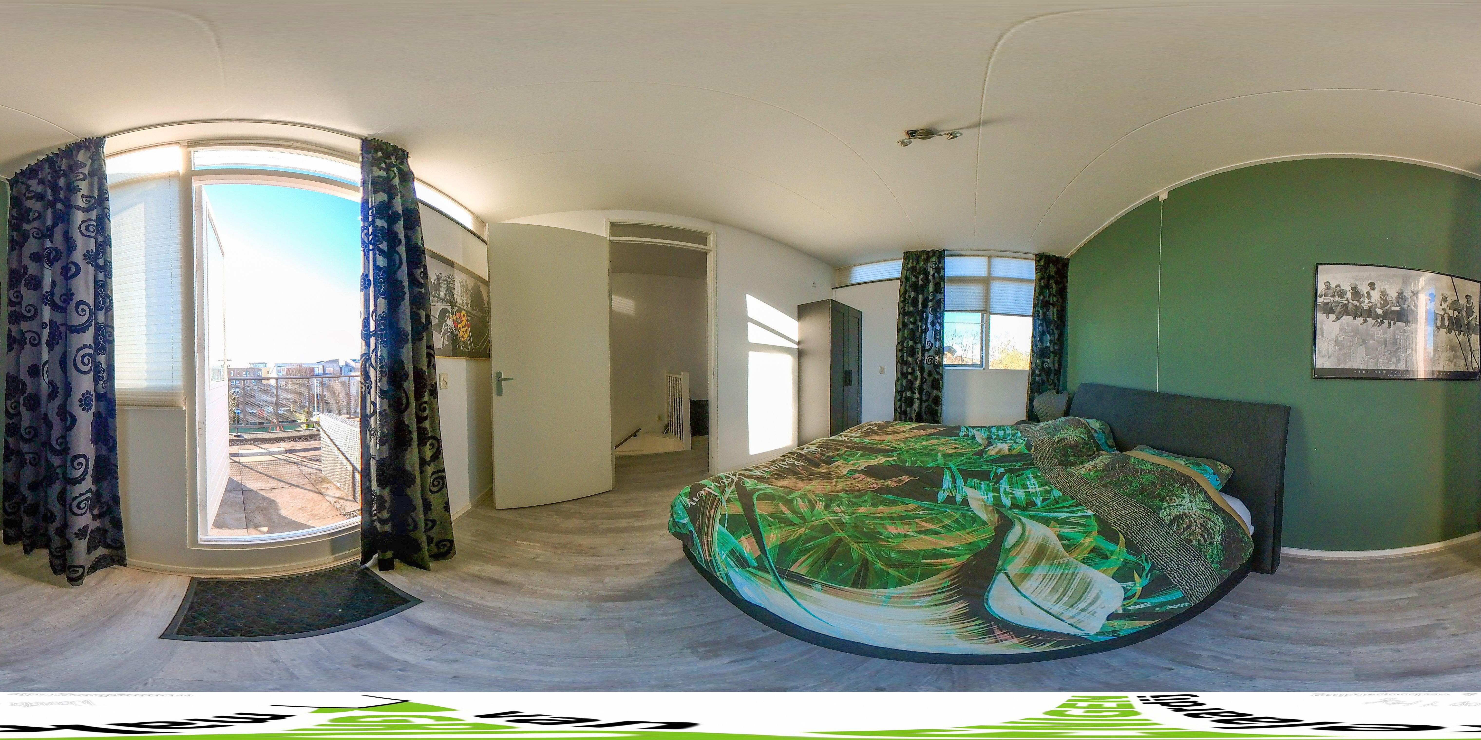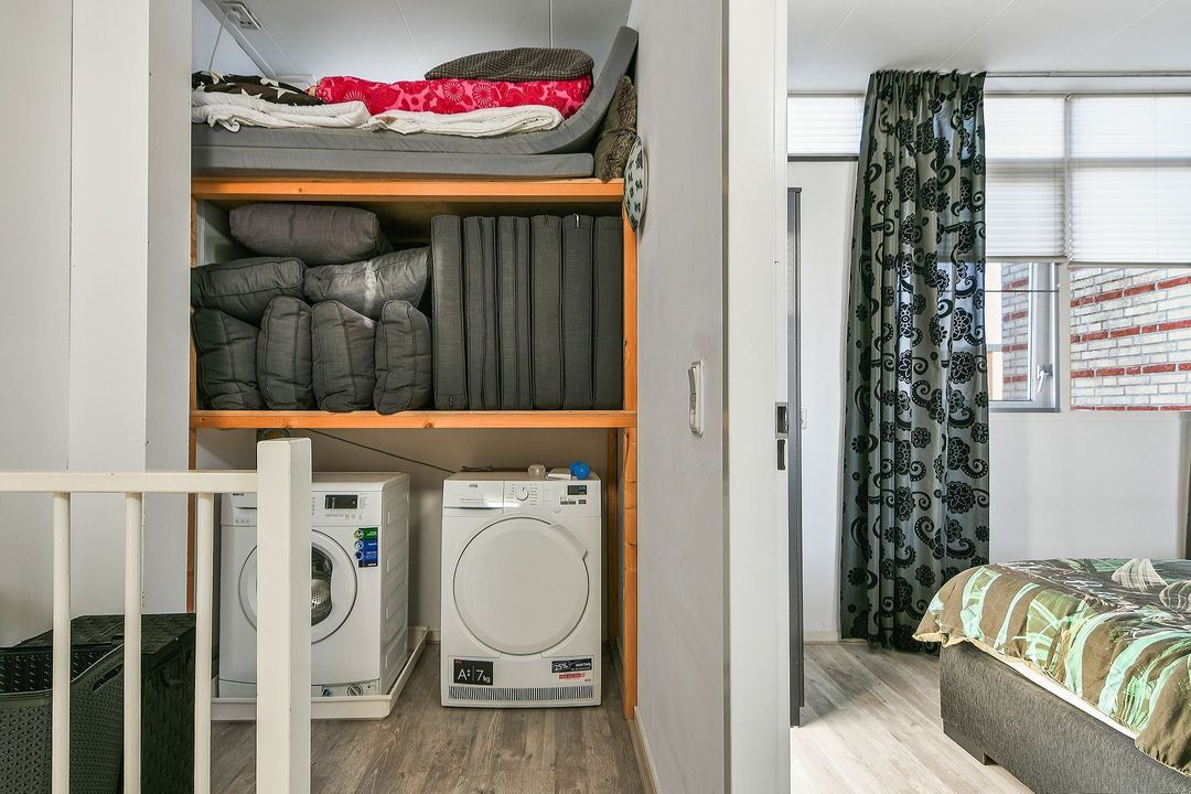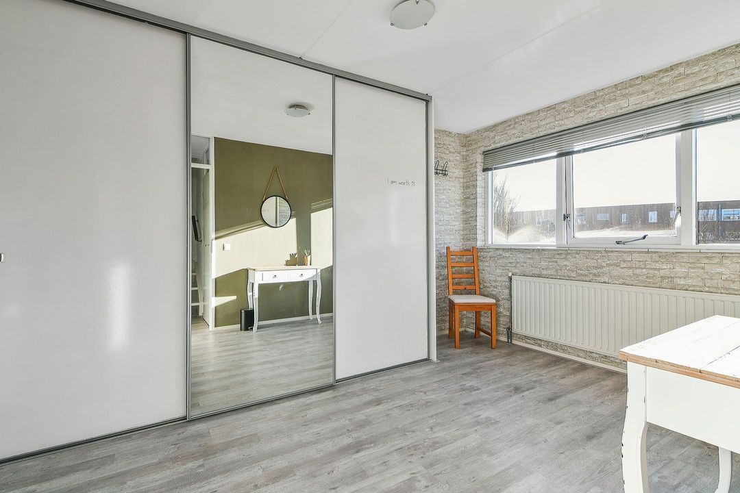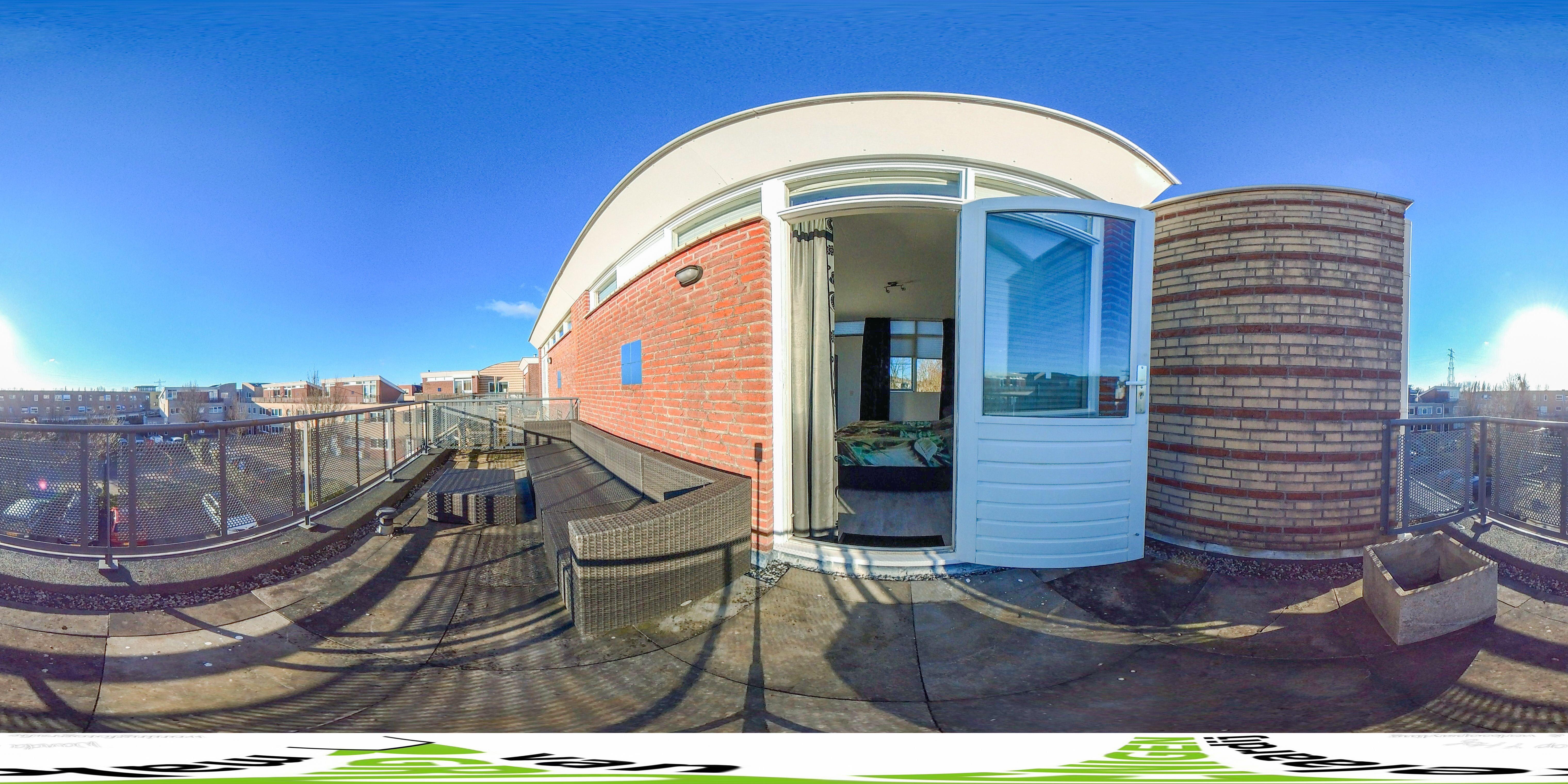 2e VERDIEPING: voorzolder met bergruimte en een slaapkamer met toegang tot een royaal dakterras.