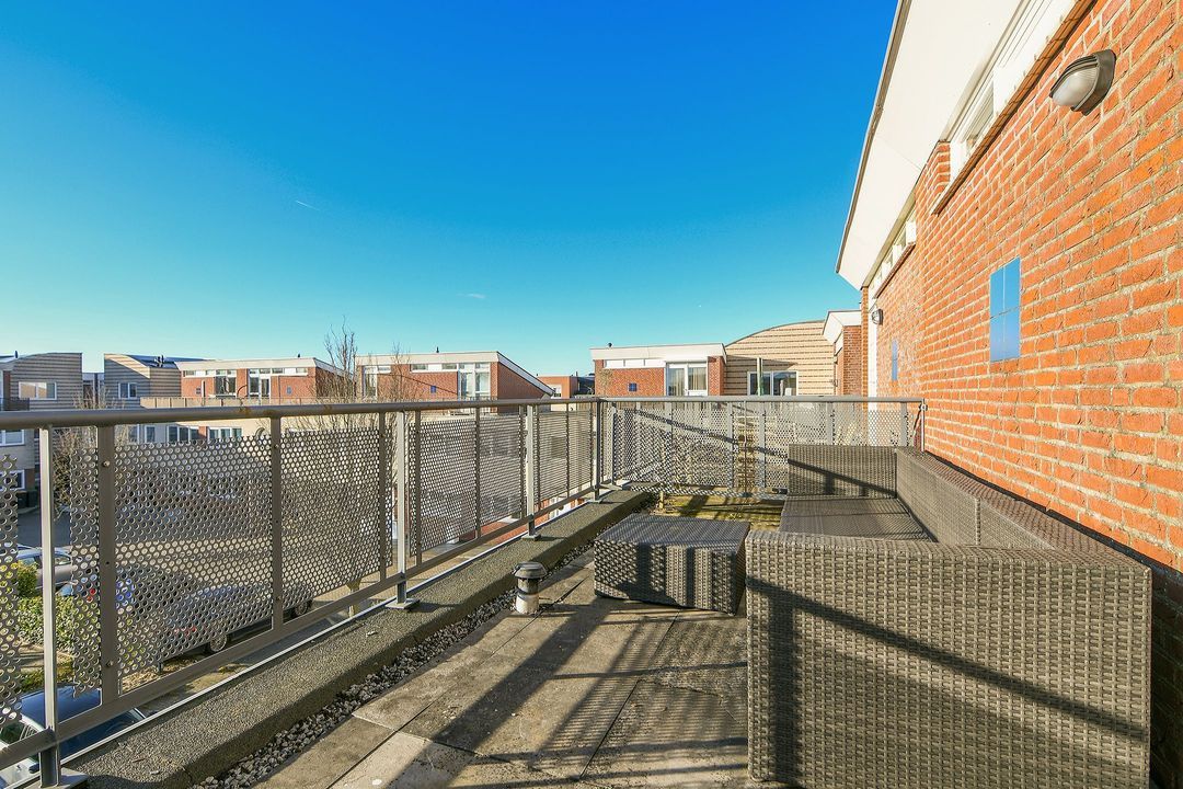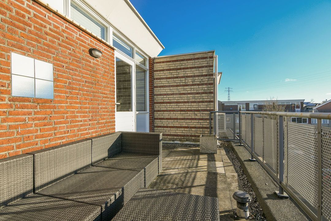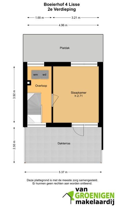 2e VERDIEPING: voorzolder met bergruimte en een slaapkamer met toegang tot een royaal dakterras.