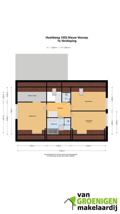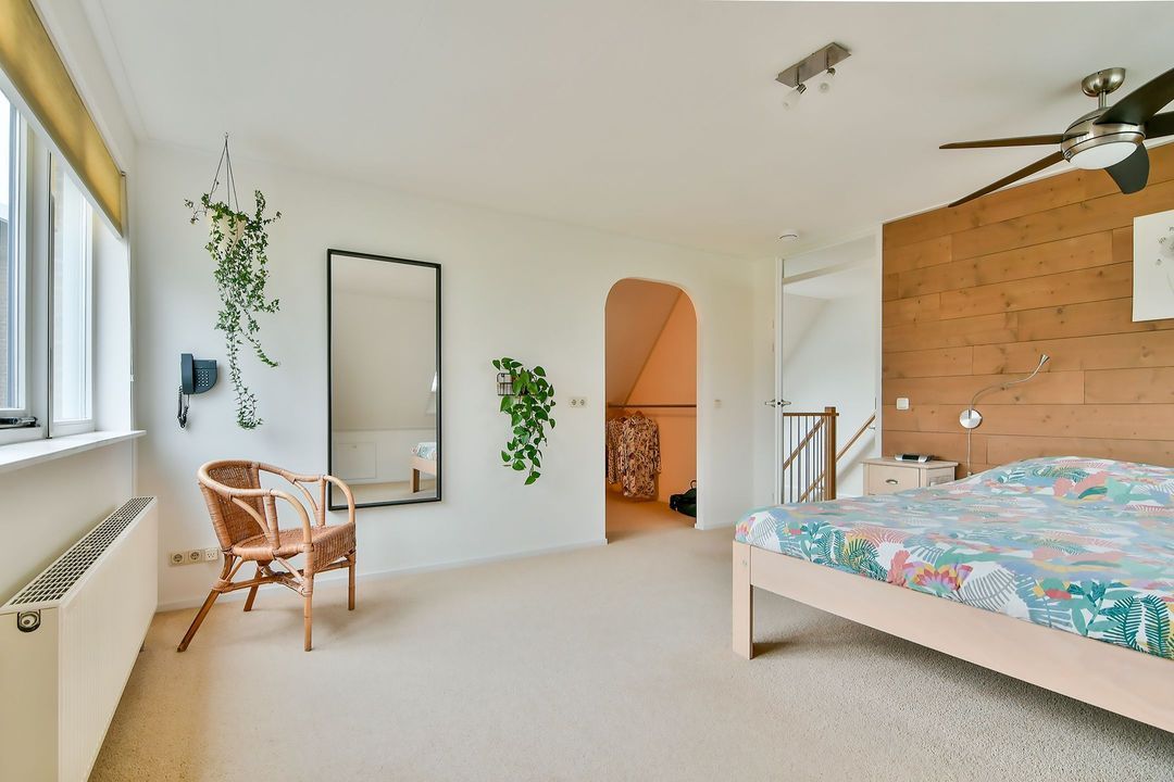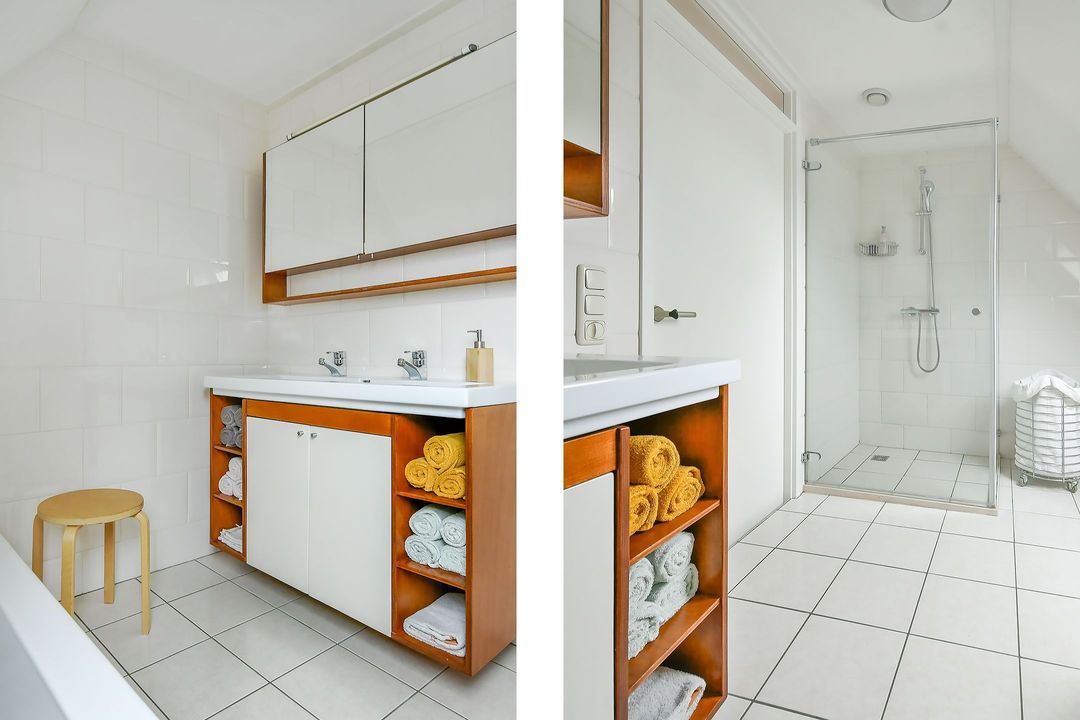 1e verdieping: overloop met separaat (hangend) toilet, 3 royale slaapkamers waarvan de hoofdslaapkamer voorzien is van een ruime inloopkast, volledig betegelde badkamer met ligbad, inloopdouche en dubbele wastafel met meubel.