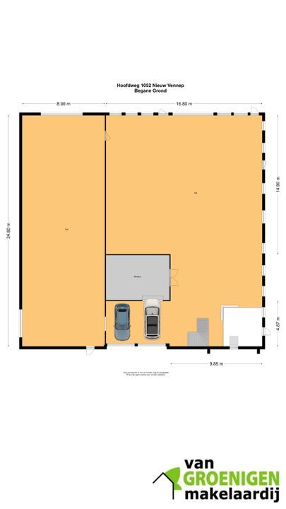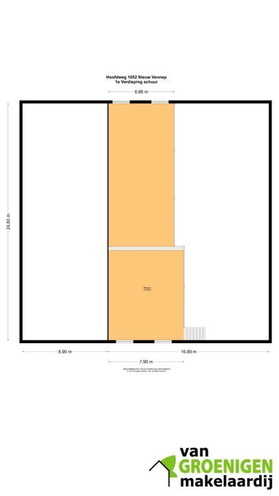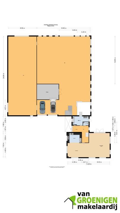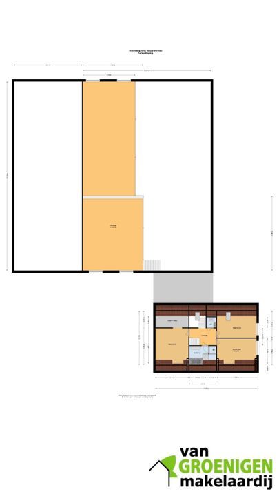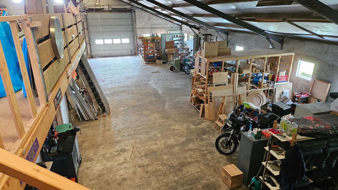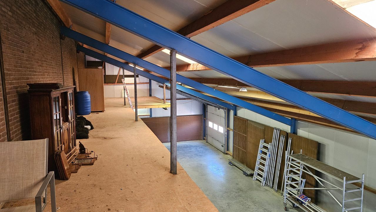 - Loods ingedeeld in verschillende segmenten: o.a. dubbele garage, opslag- en werkruimte. Begane grond van 640 m² en 1e verdieping van 180 m²; Voor- en achter voorzien van roldeuren, ook bereikbaar via de achterzijde;
