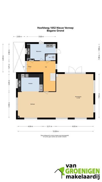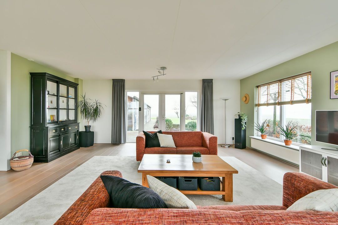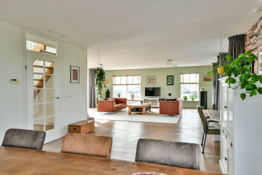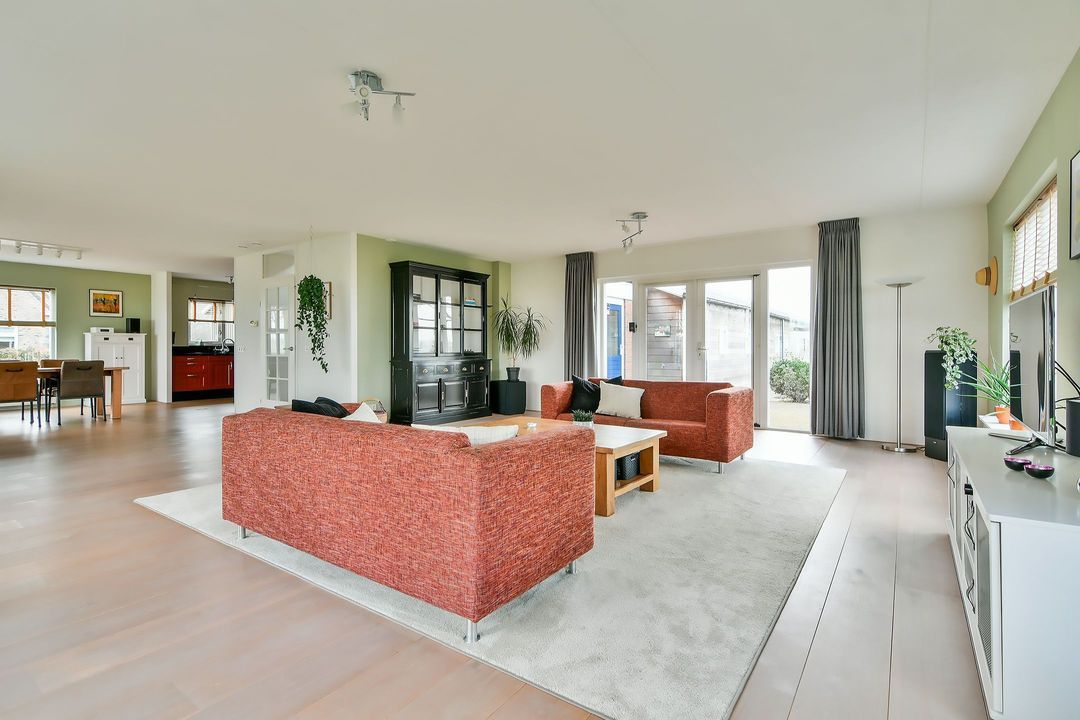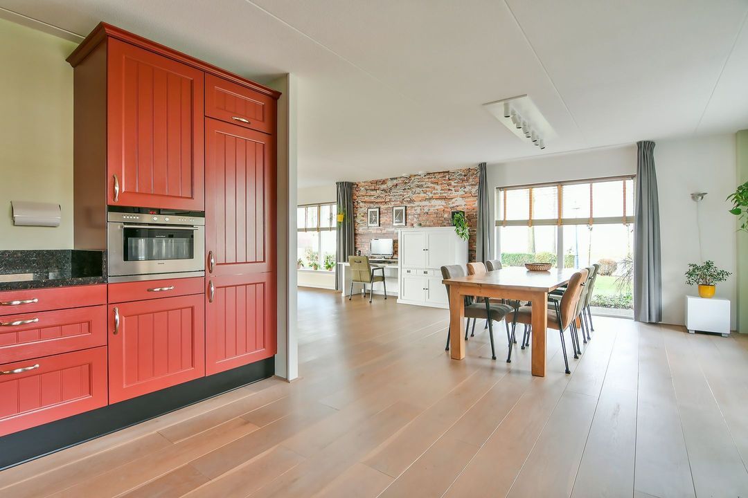 Begane grond: entree/hal met meterkast, (hangend) toilet, bijkeuken met doorgang naar de loods, royale woon-/eetkamer met openslaande deuren naar de achtertuin. Moderne keuken met diverse inbouwapparatuur o.a. inductie kookplaat, koelkast, combi magnetron/oven, vaatwasser en heeft een granieten aanrechtblad.