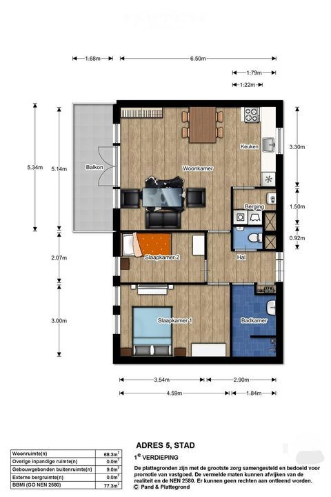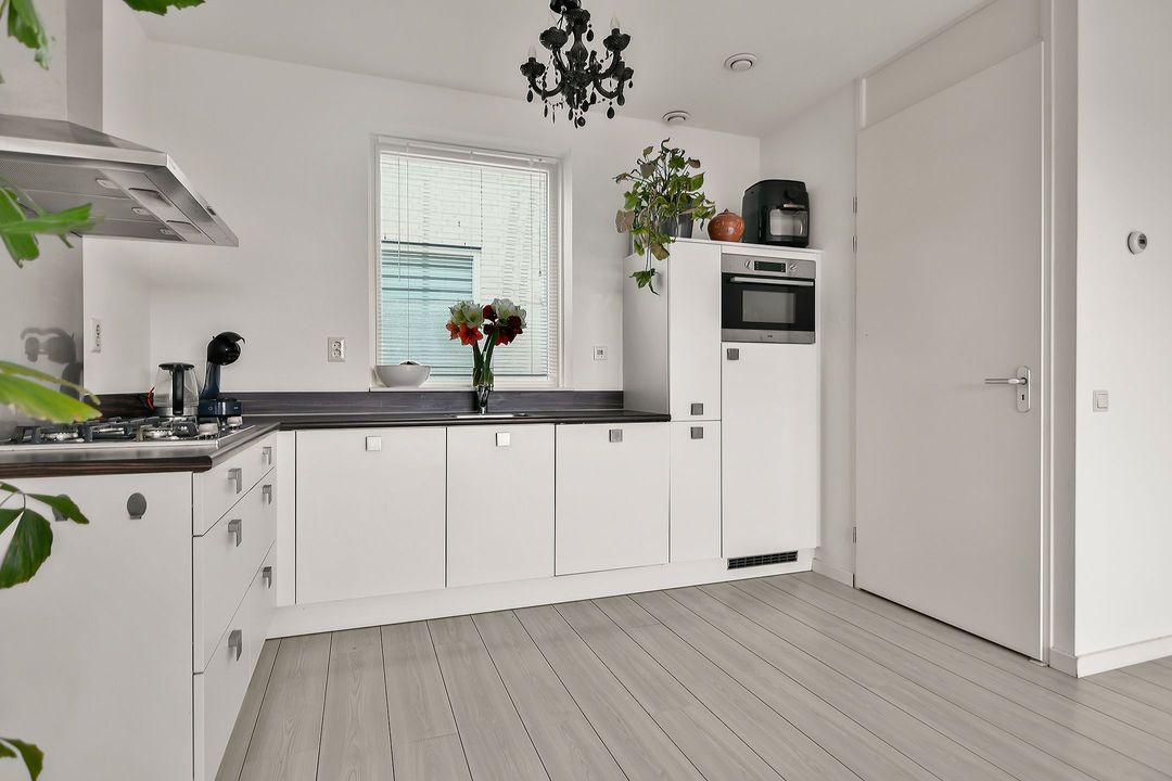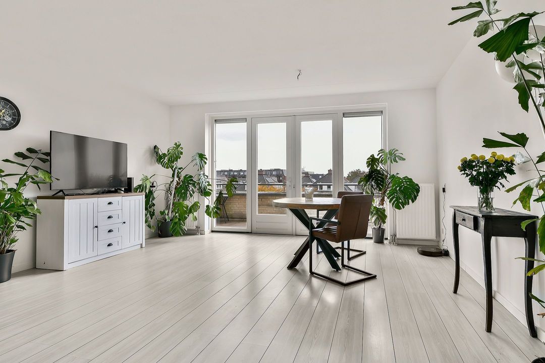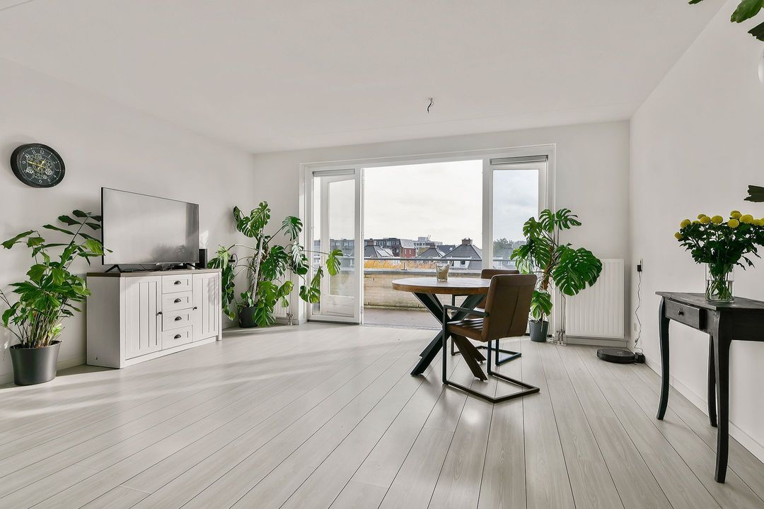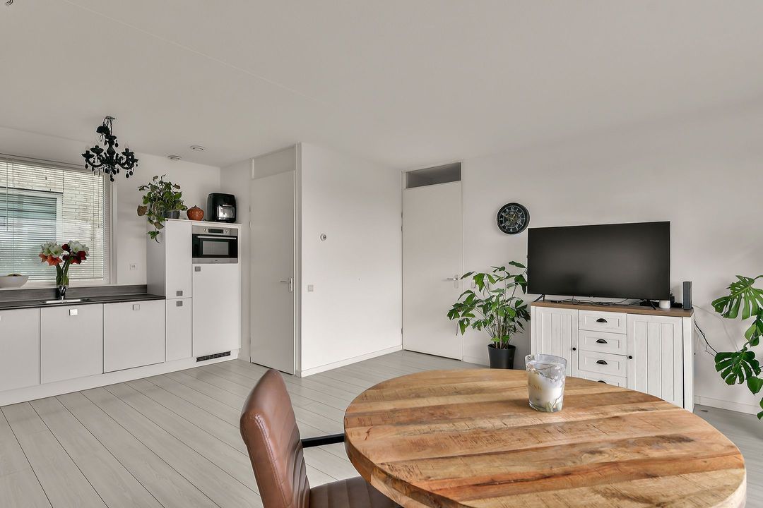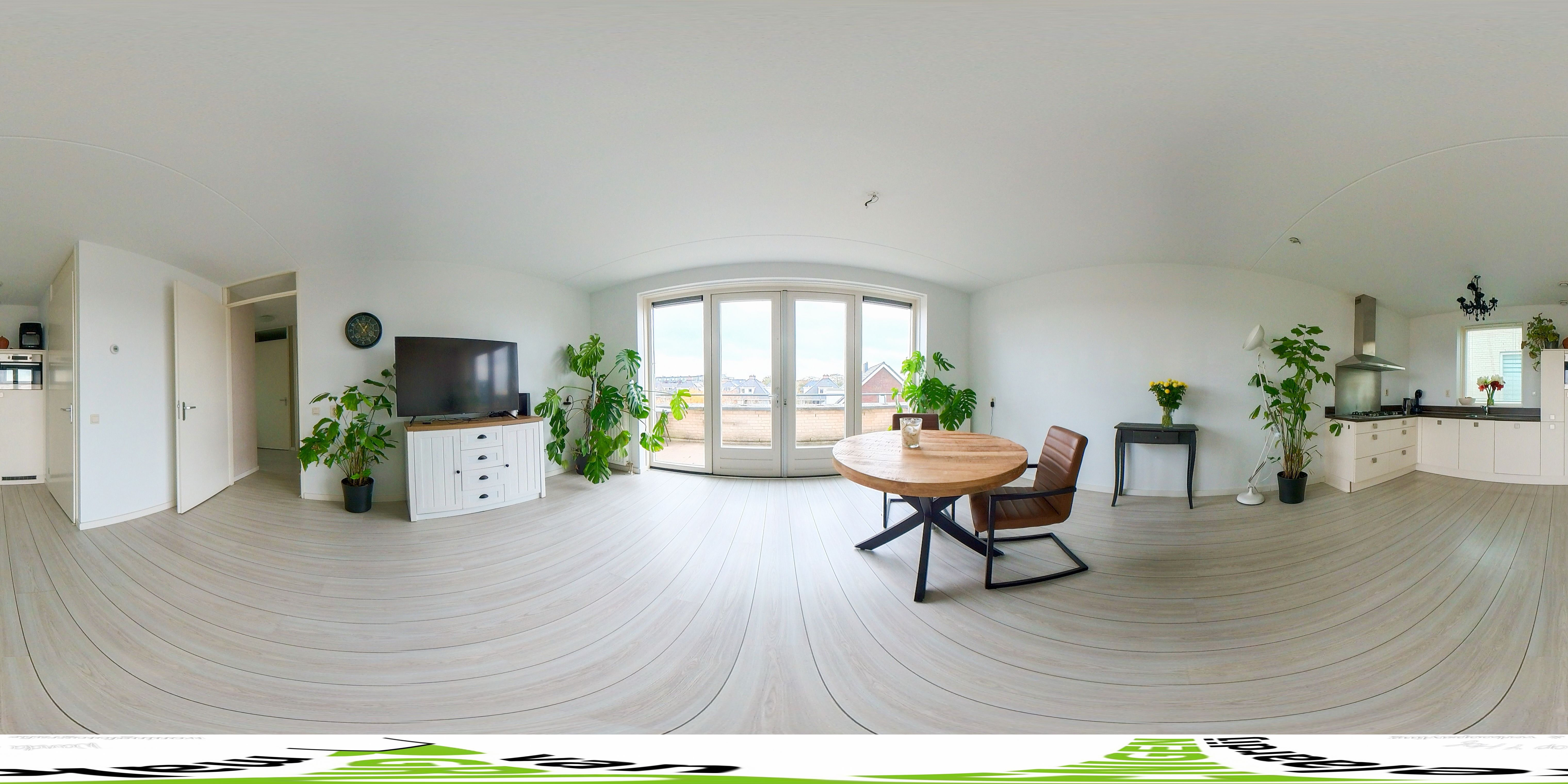 entree, hal, meterkast, toilet en fontein. Moderne, lichte woonkamer met ruime openslaande deuren naar royaal balkon (5,30 x 1,70) op het zuidoosten. Open keuken in hoekopstelling voorzien van inbouwapparatuur waaronder: koelkast, vaatwasser, combi-oven, 5 pits gasfornuis en RVS afzuigkap. Bergkast met opstelplaats CV-ketel en opstelplaats was-/droog-apparatuur. Twee ruime slaapkamers. Badkamer met inloopdouche en wastafel.