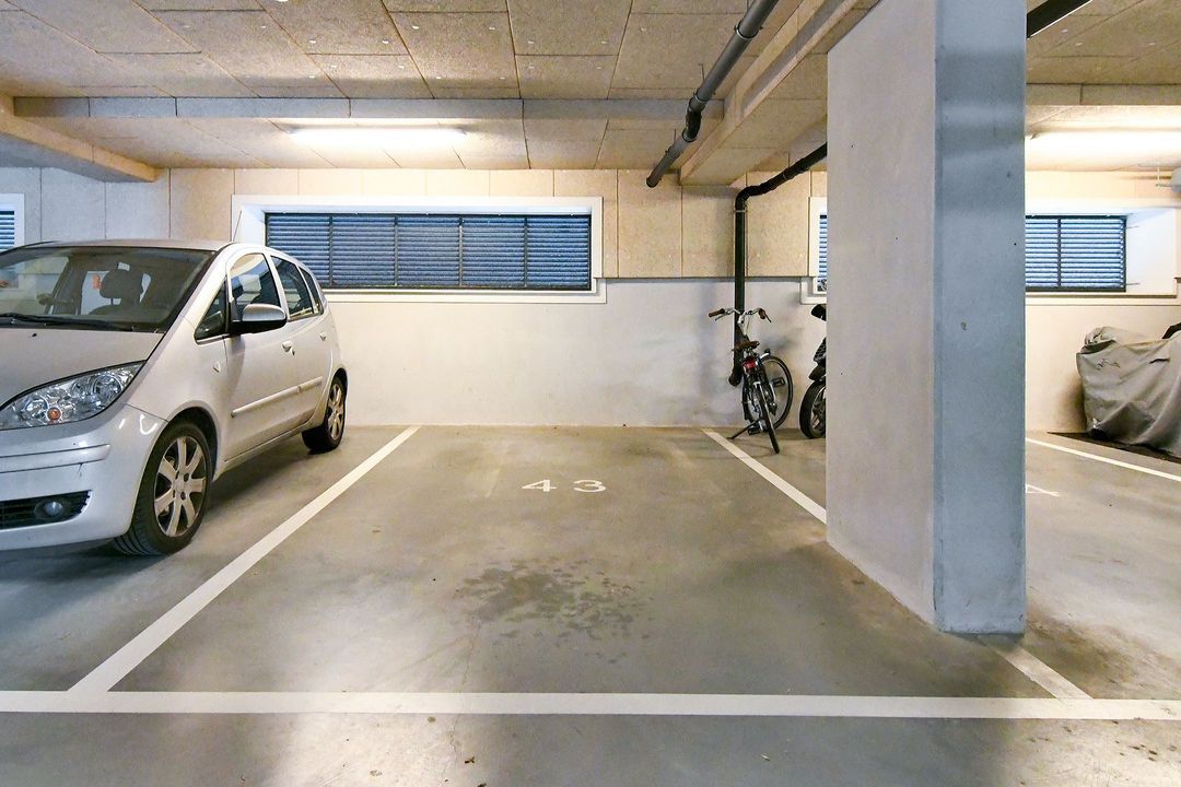 Een eigen parkeerplaats en afgesloten berging in de afgesloten parkeergarage.