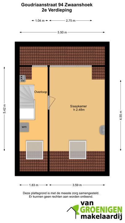 2e VERDIEPING: voorzolder met C.V. combiketel en wasmachine opstelplaats, royale slaapkamer met brede dakkapel en dakvenster.